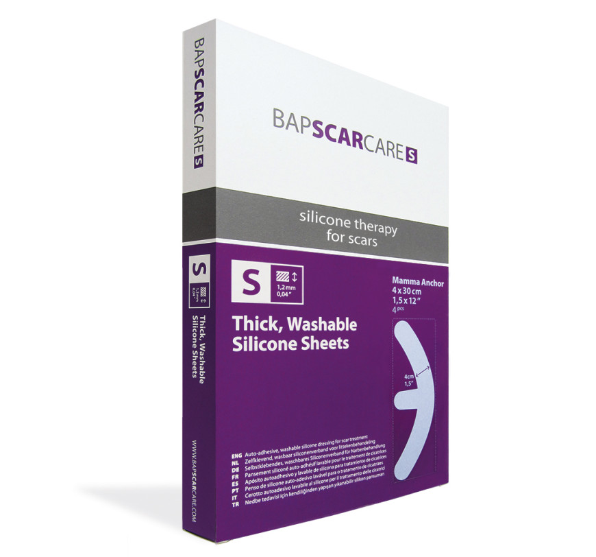 BapScarCare S, samolepilni silikonski pralni obliž za nego brazgotin (dojka sidro) 4x30cm /2 kosa